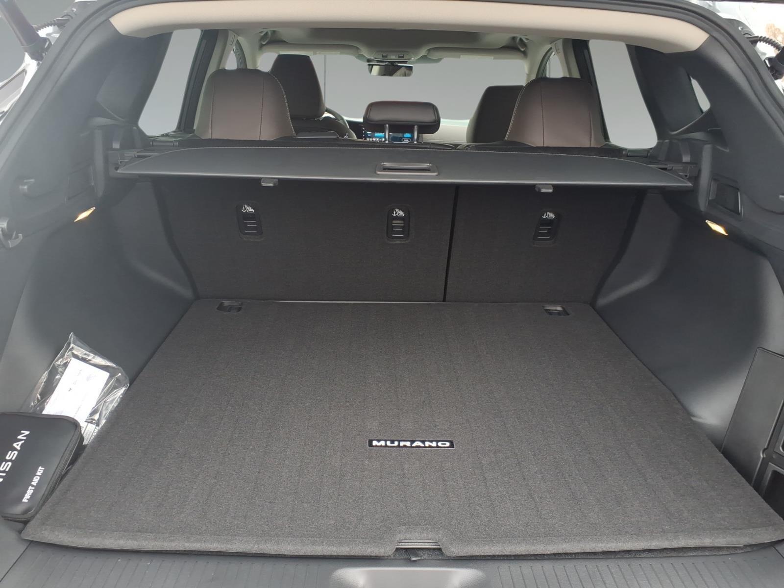 The new Murano's cargo area has been reconfigured to provide a projected best storage space in the segment (with seats up). The rear cargo area, for example, accommodates four large suitcases, while the rear seats fold flat for greater cargo convenience. With the easy rear seat release and available power rear seat return, Murano converts from people hauler to cargo ship or back within seconds. All configurations can be done from the back, with no walking to each door.