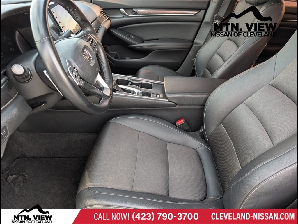 Platinum White 2019 Honda Accord Sport 4D Sedan 1.5T I4 DOHC 16V Turbocharged VTEC FWD CVT* Bluetooth/Handsfree Calling *, * USB Adapter *, Accord Sport, 4D Sedan, 1.5T I4 DOHC 16V Turbocharged VTEC, CVT, FWD, Platinum White, Black w/Cloth Seat Trim, 4-Wheel Disc Brakes, 8 Speakers, ABS brakes, Air Conditioning, Alloy wheels, AM/FM radio, Apple CarPlay/Android Auto, Auto High-beam Headlights, Automatic temperature control, Brake assist, Bumpers: body-color, Cloth Seat Trim, Delay-off headlights, Driver door bin, Driver vanity mirror, Dual front impact airbags, Dual front side impact airbags, Electronic Stability Control, Emergency communication system: HondaLink, Exterior Parking Camera Rear, Forward collision: Collision Mitigation Braking System (CMBS) FCW mitigation, Four wheel independent suspension, Front anti-roll bar, Front Bucket Seats, Front Center Armrest, Front dual zone A/C, Front fog lights, Front reading lights, Fully automatic headlights, Illuminated entry, Knee airbag, Leather Shift Knob, Leather steering wheel, Low tire pressure warning, Occupant sensing airbag, Outside temperature display, Overhead airbag, Overhead console, Panic alarm, Passenger door bin, Passenger vanity mirror, Power door mirrors, Power driver seat, Power steering, Power windows, Radio data system, Radio: 180-Watt AM/FM Audio System, Rear anti-roll bar, Rear seat center armrest, Rear window defroster, Remote keyless entry, Security system, Speed control, Speed-sensing steering, Speed-Sensitive Wipers, Split folding rear seat, Spoiler, Steering wheel mounted audio controls, Tachometer, Telescoping steering wheel, Tilt steering wheel, Traction control, Trip computer, Variably intermittent wipers, Wheels: 19 Machine-Finished Alloy w/Black Inserts, Accord Sport, 4D Sedan, 1.5T I4 DOHC 16V Turbocharged VTEC, CVT, FWD, Platinum White, Black w/Cloth Seat Trim.Experience the exceptional quality and reliability of pre-owned vehicles at Mtn View Nissan, proudly part of the esteemed Mtn View Auto Group with locations in Chattanooga, Cleveland, and Dalton, GA. Discover our wide selection of pre-owned vehicles backed by the unparalleled assurance of our 6 Month/6,000 MIle MV Certified Powertrain Warranty. Explore today!