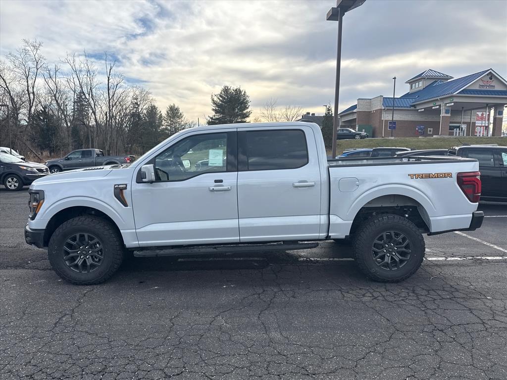 The 2025 Ford Supercrew 4x4 F-150 Tremor is a powerful and reliable vehicle. It has a space white metallic exterior and a 3.5 liter 6 cylinder engine with twin turbocharger capabilities. It has a fuel economy of 16 mpg in the city and 21 mpg on the highway, making it an efficient choice for long drives. The NB interior features touch screen display, Bluetooth audio connection, blind spot sensor, hill start assist, part time four wheel drive, navigation system with voice recognition, and Bluetooth phone connectivity. This vehicle has been crash tested for safety and comes with a 5 out of 5 star crash test rating. With all these features, the 2025 Ford Supercrew 4x4 F-150 Tremor is the perfect choice for anyone looking for a reliable and powerful motorcar.